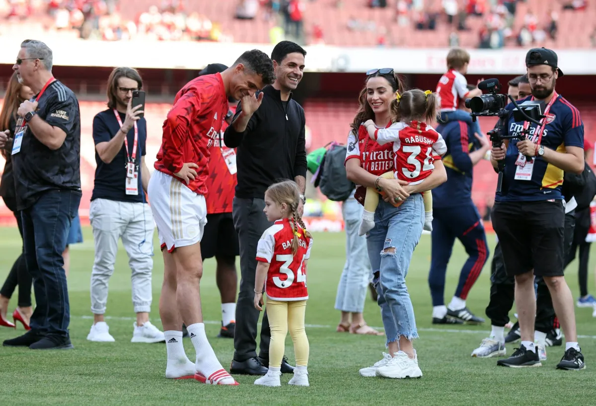 أرتيتا عقب آخر مباراة في البريمرليغ مع عائلة غرانت شاكا (رويترز)