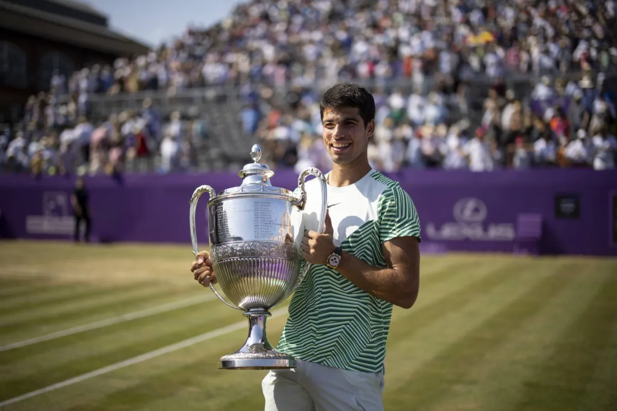 وهو اللقب الأول لألكاراس، البالغ من العمر 20 عاماً، على الملاعب العشبية في مسيرته الاحترافية، وجاء قبل 8 أيام من انطلاق «بطولة ويمبلدون»، ثالثة البطولات الأربع الكبرى، في ثالث مشاركة له على هذه النوعية من الملاعب.