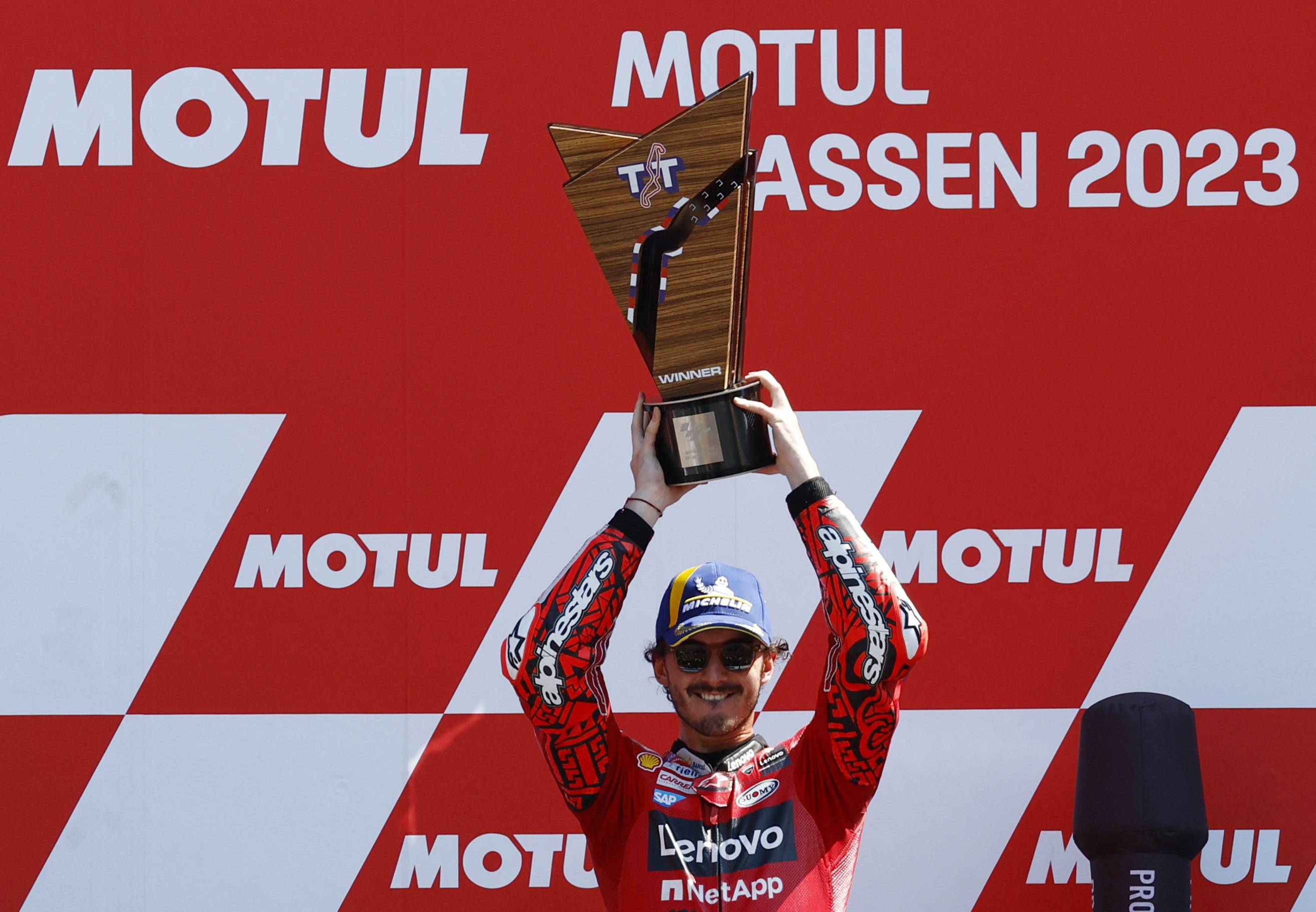 عزز بطل العالم الدراج الإيطالي فرانتشيسكو بانيايا (دوكاتي) صدارته للترتيب العام في فئة موتو جي بي، بفوزه الأحد بجائزة هولندا الكبرى على حلبة أسن، فيما فرضت عقوبة على الجنوب إفريقي براد بيندر، الذي حلّ ثالثاً ليتراجع للمركز الرابع.