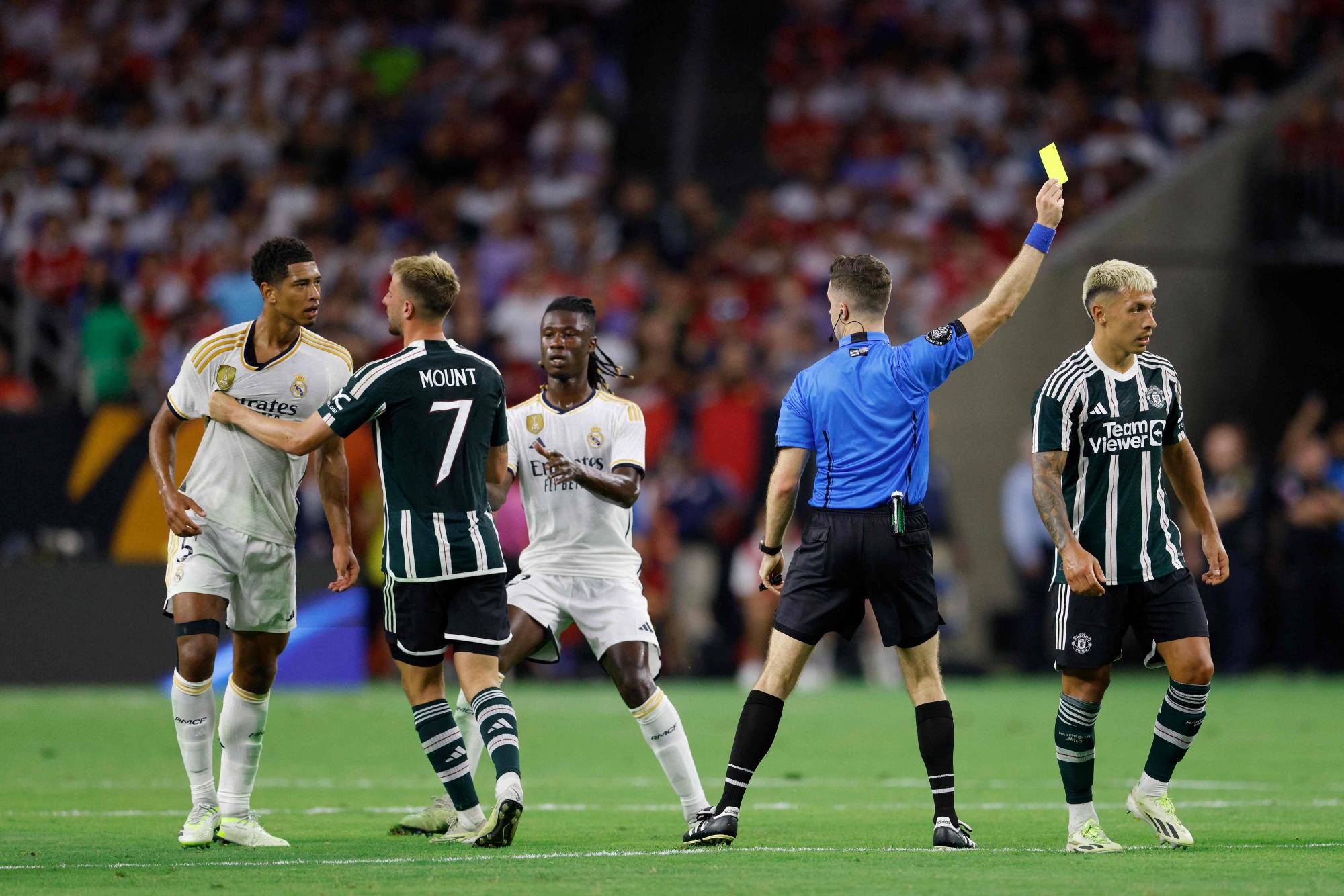 واصل لاعب كرة القدم الإنجليزي الدولي جود بيلينغهام تألقه في صفوف فريقه الجديد ريال مدريد الإسباني، وقاد الفريق إلى الفوز الثمين 2 - صفر على مانشستر يونايتد الإنجليزي، الخميس، في جولة الأبطال الودية، المقامة حالياً بالولايات المتحدة الأميركية.