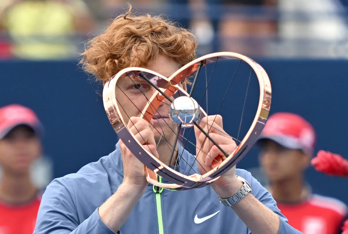 النجم الإيطالي سينر يحمل الكأس (د.ب.أ)