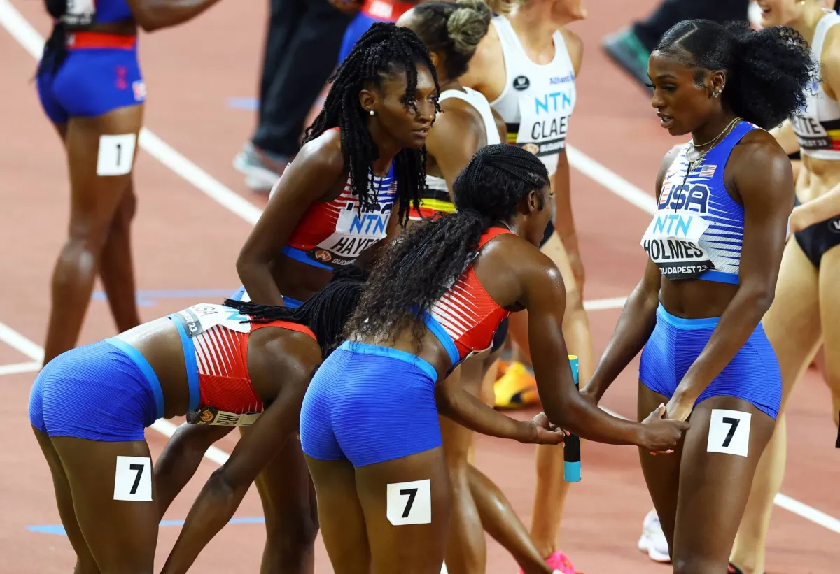 تلقت سيدات الولايات المتحدة ضربة قوية، بعد استبعاد فريق التتابع لسباق 4 في 400 متر، بعد خطأ في تسليم عصا التبادل في الدور قبل النهائي، السبت.