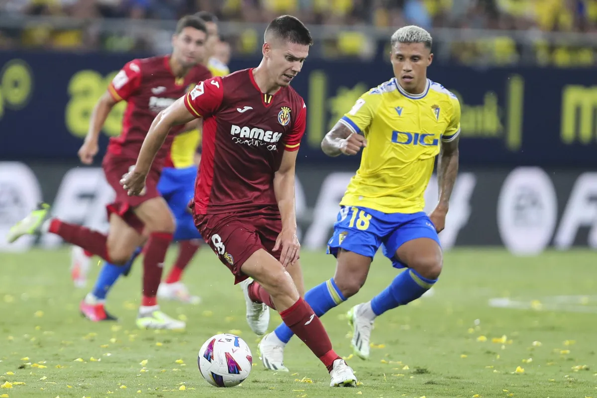 من مباراة فيا ريال وقادش في الدوري الإسباني (إ.ب.أ)