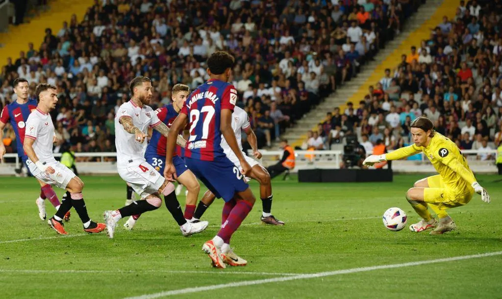 ويدين برشلونة بفوزه إلى النيران الصديقة عندما سجل قطب الدفاع السابق للغريم التقليدي ريال مدريد والعائد الى صفوف النادي الاندلسي المخضرم سيرجيو راموس بالخطأ في مرمى فريقه عند الدقيقة 76.