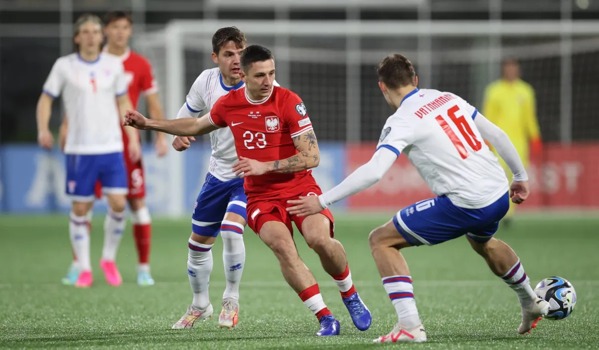 جانب من مواجهة بولندا وجزر فارو التي أقيمت الخميس وانتهت بفوز الضيوف بثنائية (إ.ب.أ)