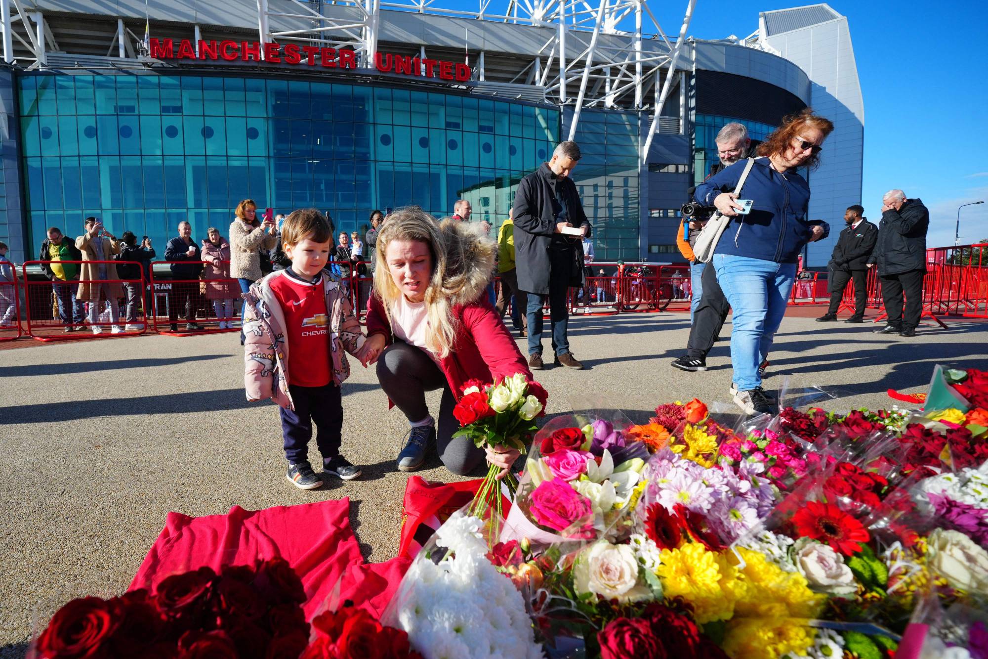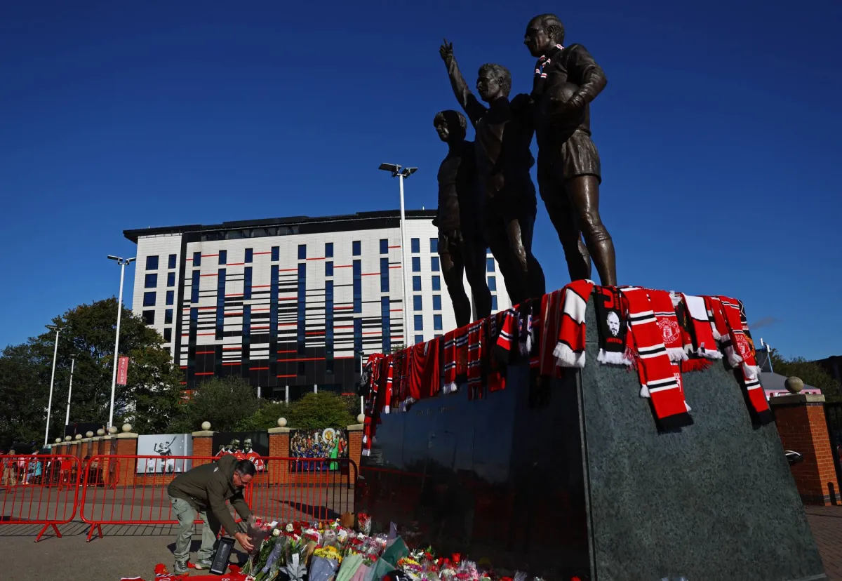 تجمع مشجعون من جميع الأعمار في ملعب أولد ترافورد، الأحد، لإحياء ذكرى أسطورة مانشستر يونايتد، بوبي تشارلتون، الذي توفي السبت، حيث اصطفوا للتوقيع على دفتر العزاء ووضع الزهور والأوشحة عند قاعدة تمثال الثالوث، الذي يشير إلى ثلاثي مانشستر يونايتد المؤلف من؛ جورج بست، ودينيس لو، والسير بوبي تشارلتون، في أولد ترافورد.