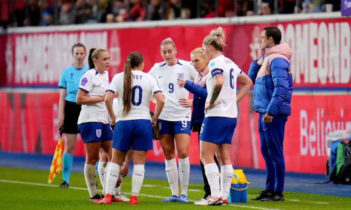 سارينا فيغمان مدربة انجلترا توجه اللاعبات في احدى المباريات (غيتي)