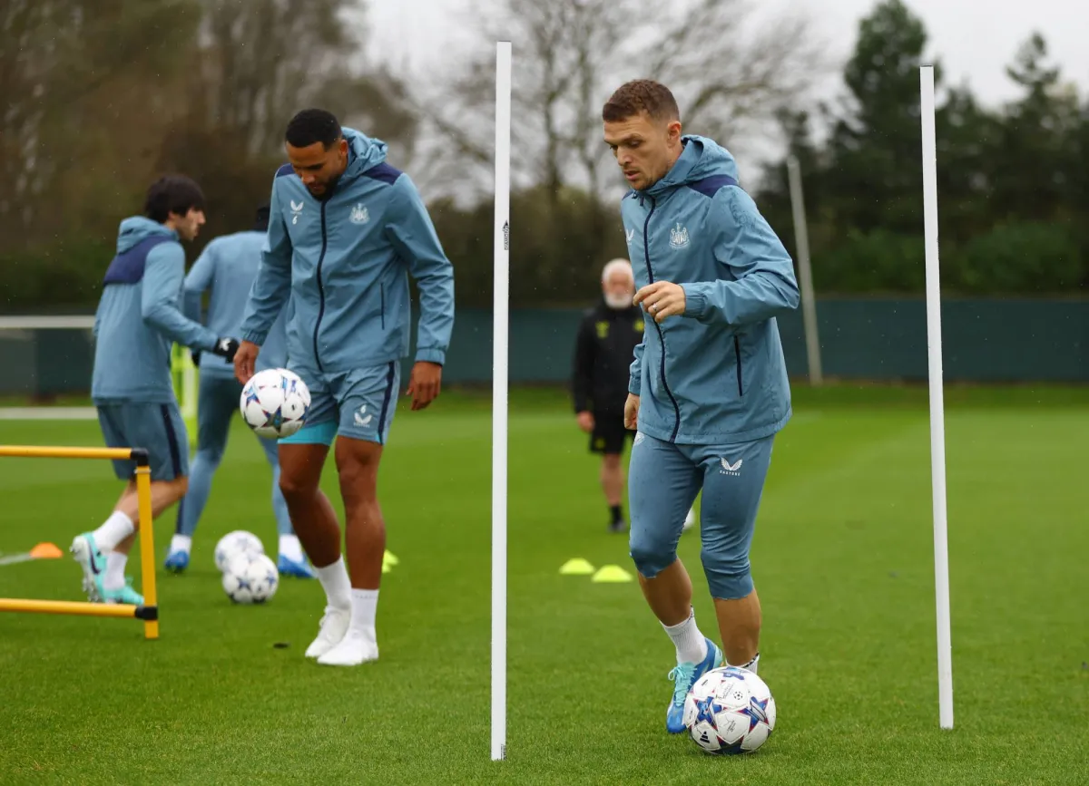 لاعبو نيوكاسل يتقدمهم تريبيير خلال التدريب الاخير قبل مواجهة دورتموند  (رويترز)