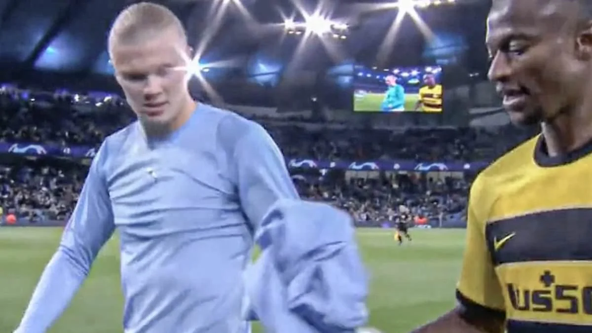 وشُوهد مُدافع «يانغ بويز» يقترب من هالاند، الذي كان قد سجل بالفعل أحد هدفيه بحلول ذلك الوقت، خلال توجه الفريقين إلى النفق المؤدي لغرف الملابس؛ حيث تبادلا القمصان.