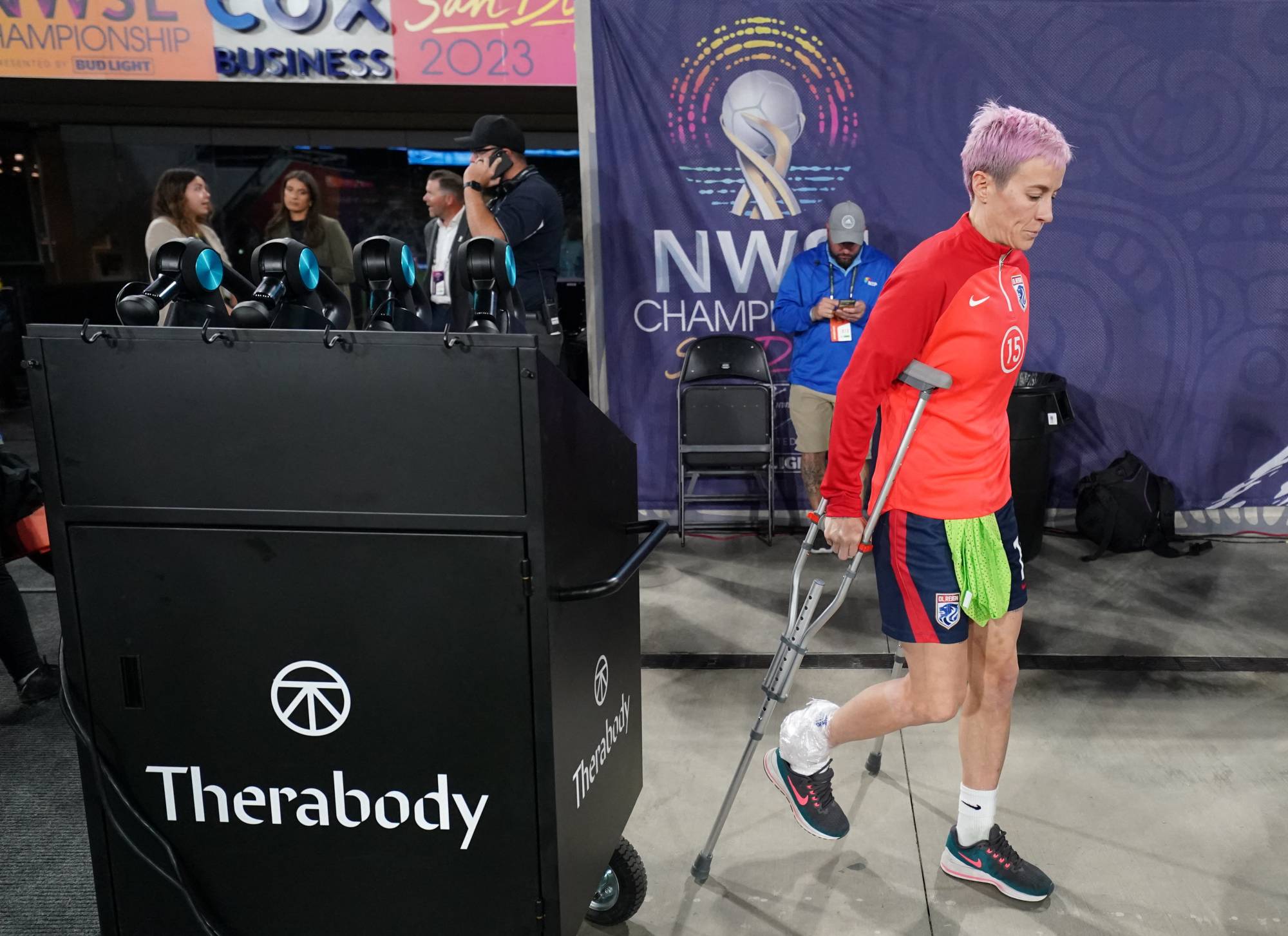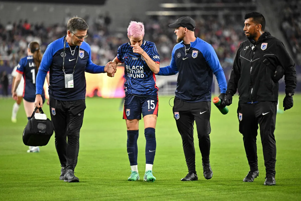 انتهت المشاركة الأخيرة للنجمة المخضرمة ميغان رابينو في ملاعب كرة القدم بعد 3 دقائق من بدايتها خلال مشاركتها مع فريقها أو إل ريغن بنهائي الدوري الأميركي للسيدات.