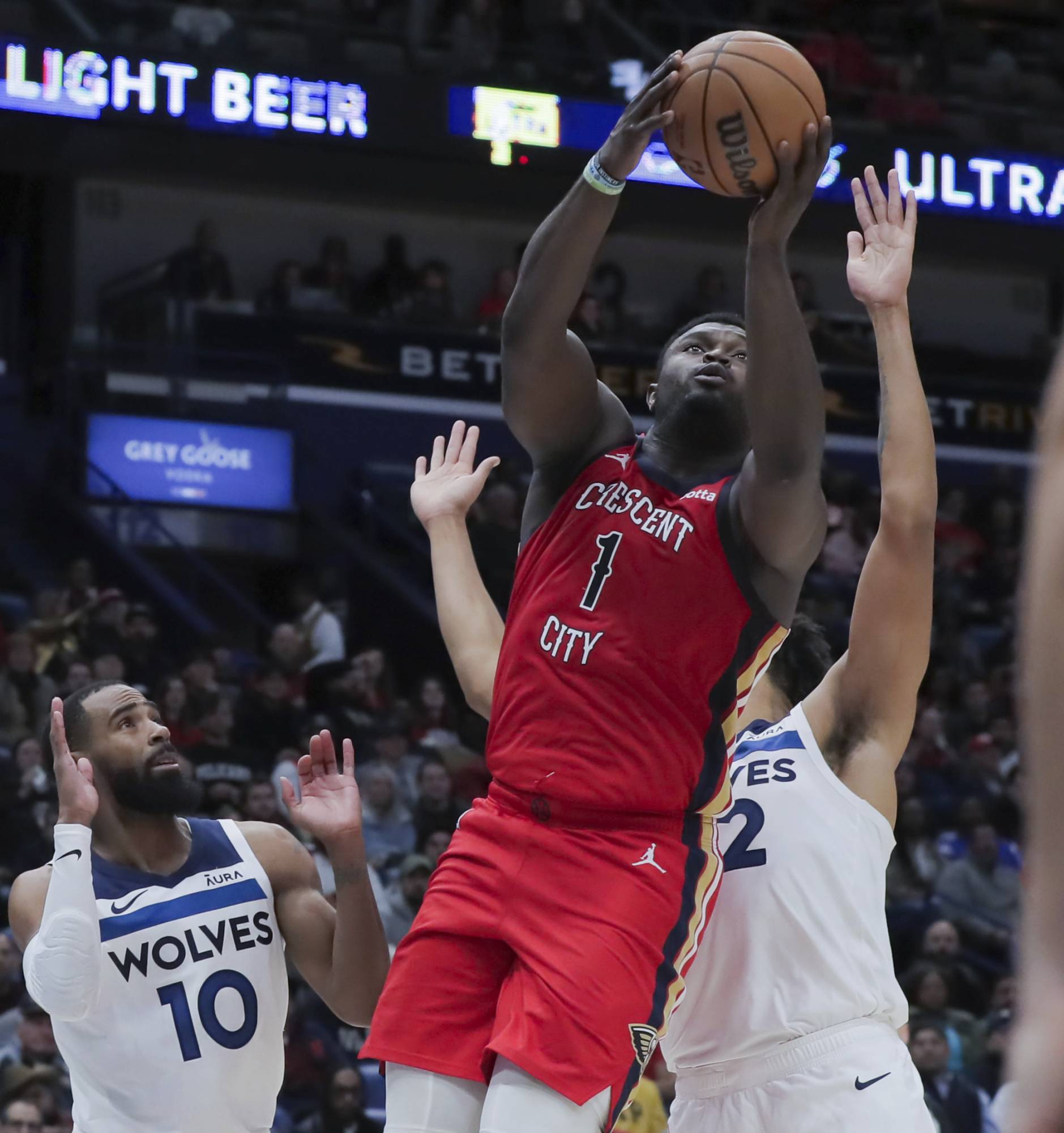 وقاد زايون وليامسون فريقه نيو أورليانز بيليكانز لتحقيق الفوز على مينيسوتا تمبروولفز الذي افتقد نجمه أنتوني إدواردز 121 - 107.