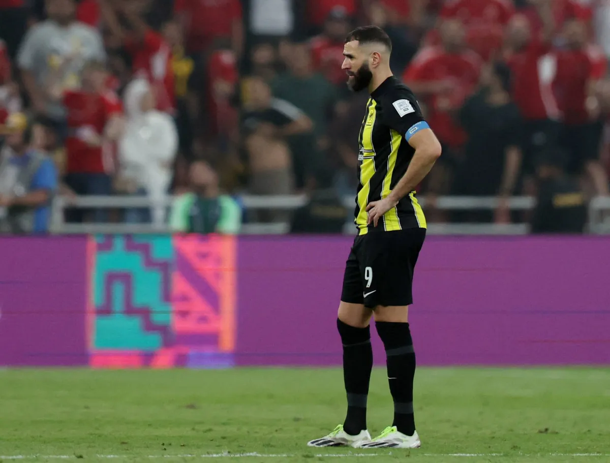 بنزيمة متأثراً بالخسارة بعد نهاية المباراة (رويترز)