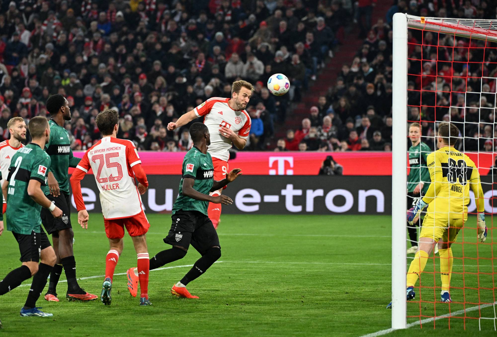 ولم ينتظر بايرن طويلا لإراحة جماهيره التي كانت تخشى من تعثر جديد يبعده أكثر في معركة اللقب، وأضاف كين هدفه الشخصي الثاني والـ20 في 14 مباراة معززاً صدارته لائحة هدّافي البوندسليغا، وهذه المرة إثر ركلة حرّة نفذها ألكسندر بافلوفيتش، ووصلت إلى كيم الذي حوّلها برأسه إلى مهاجم توتنهام السابق فتابعها بدوره برأسية قوية داخل مرمى شتوتغارت (55).