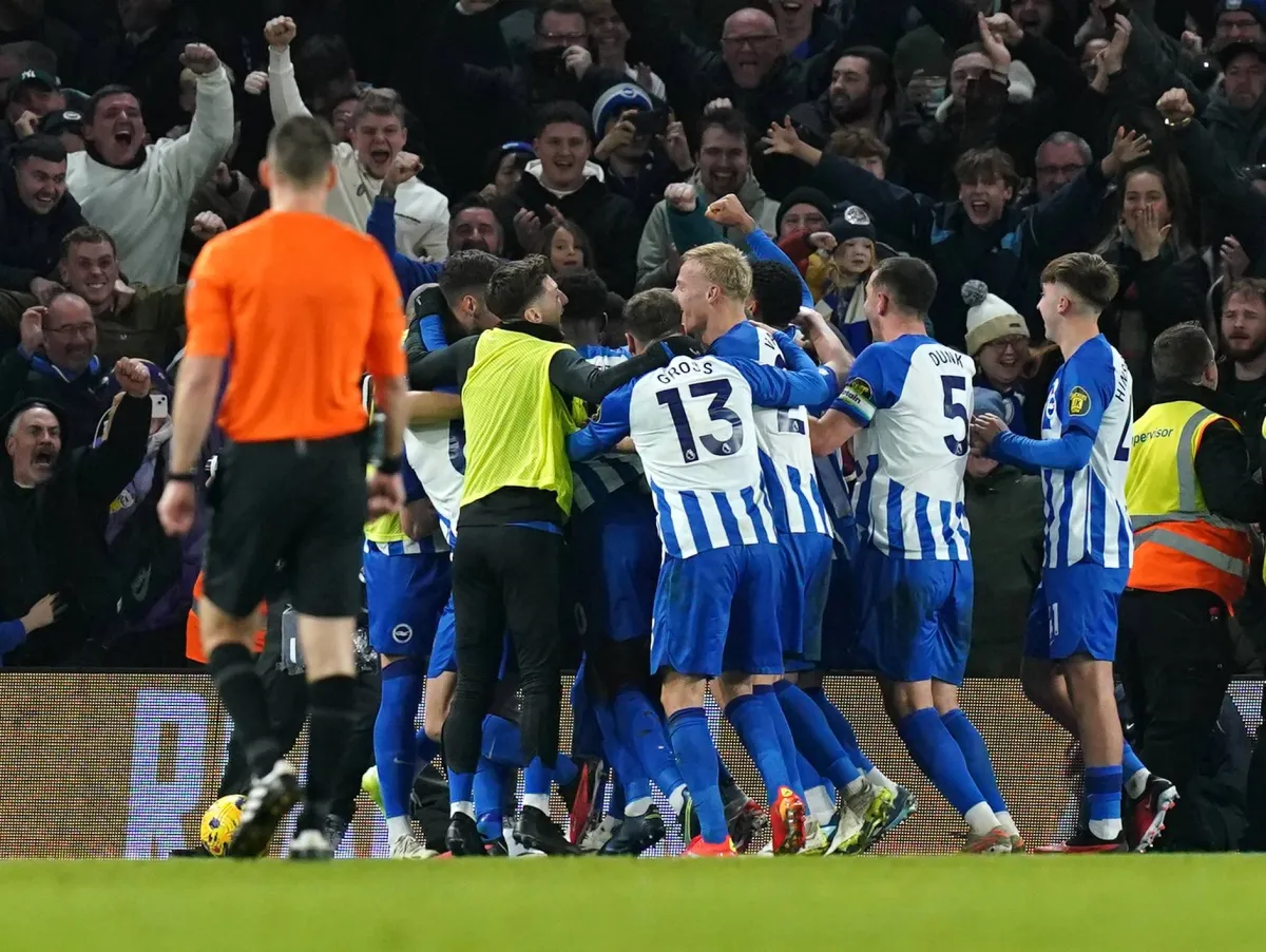 صعد برايتون آند هوف ألبيون إلى المركز الثامن بين فرق الدوري الإنجليزي الممتاز لكرة القدم بعد فوزه الصاعق 4-2 على توتنهام هوتسبير الليلة الماضية ليختتم عاما مذهلا تحت قيادة المدرب الإيطالي روبرتو دي تسيربي.