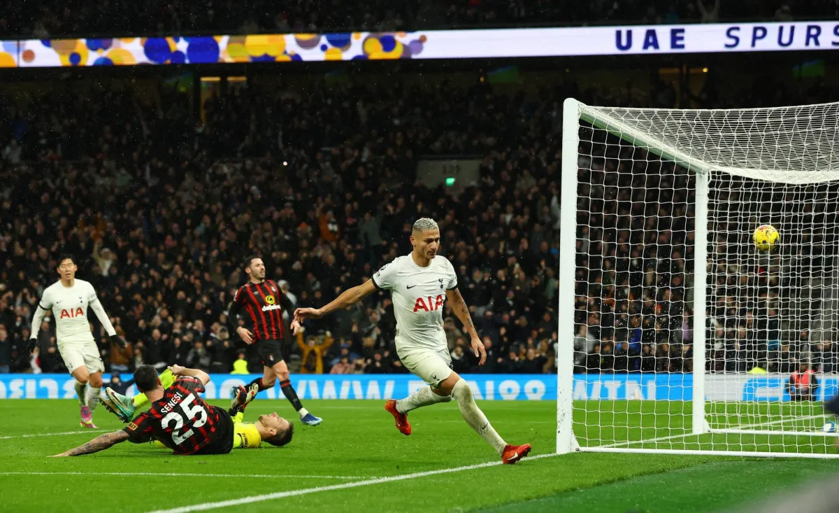 ريتشاليسون مهاجم توتنهام وفرحة هز شباك بورنموث (رويترز)