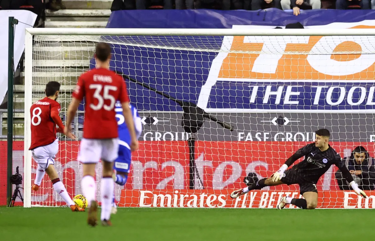 وتجنب فريق المدرب البرتغالي إريك تن هاغ خسارته الثامنة في 14 مباراة خارج ملعبه في كل المسابقات منذ نهائي كأس الاتحاد الموسم الماضي، لكن الفوز لم يمنع المدير الفني من إلقاء اللوم على لاعبيه في إهدار فرص سهلة عدّة. وافتتح دالوت التسجيل في الدقيقة 22 بعدما اعترض لاعبو ويغان تسديدة من ماركوس راشفورد لتصل الكرة إلى اللاعب البرتغالي الذي أطلقها قوية سكنت الشباك من مسافة بعيدة.