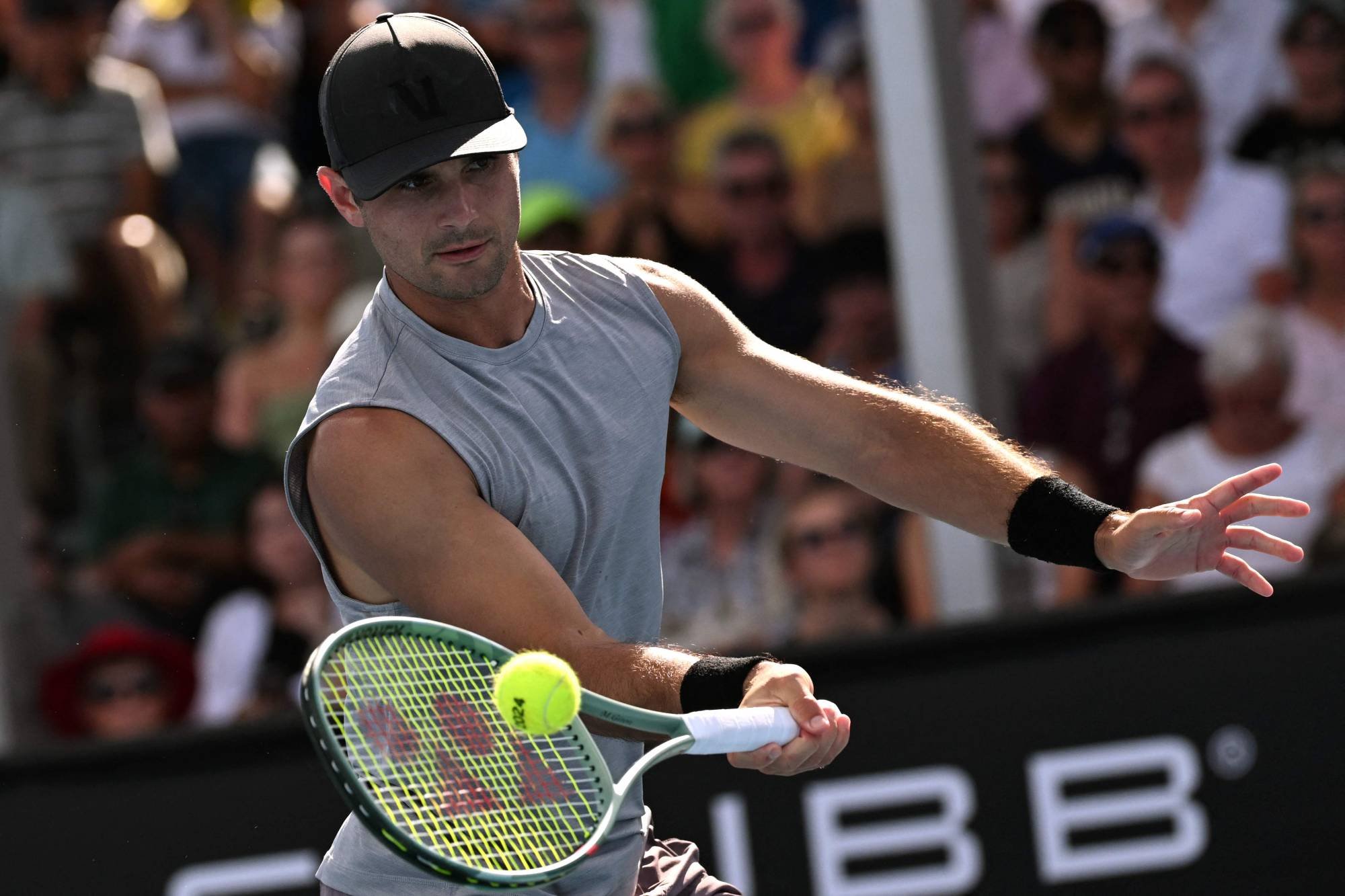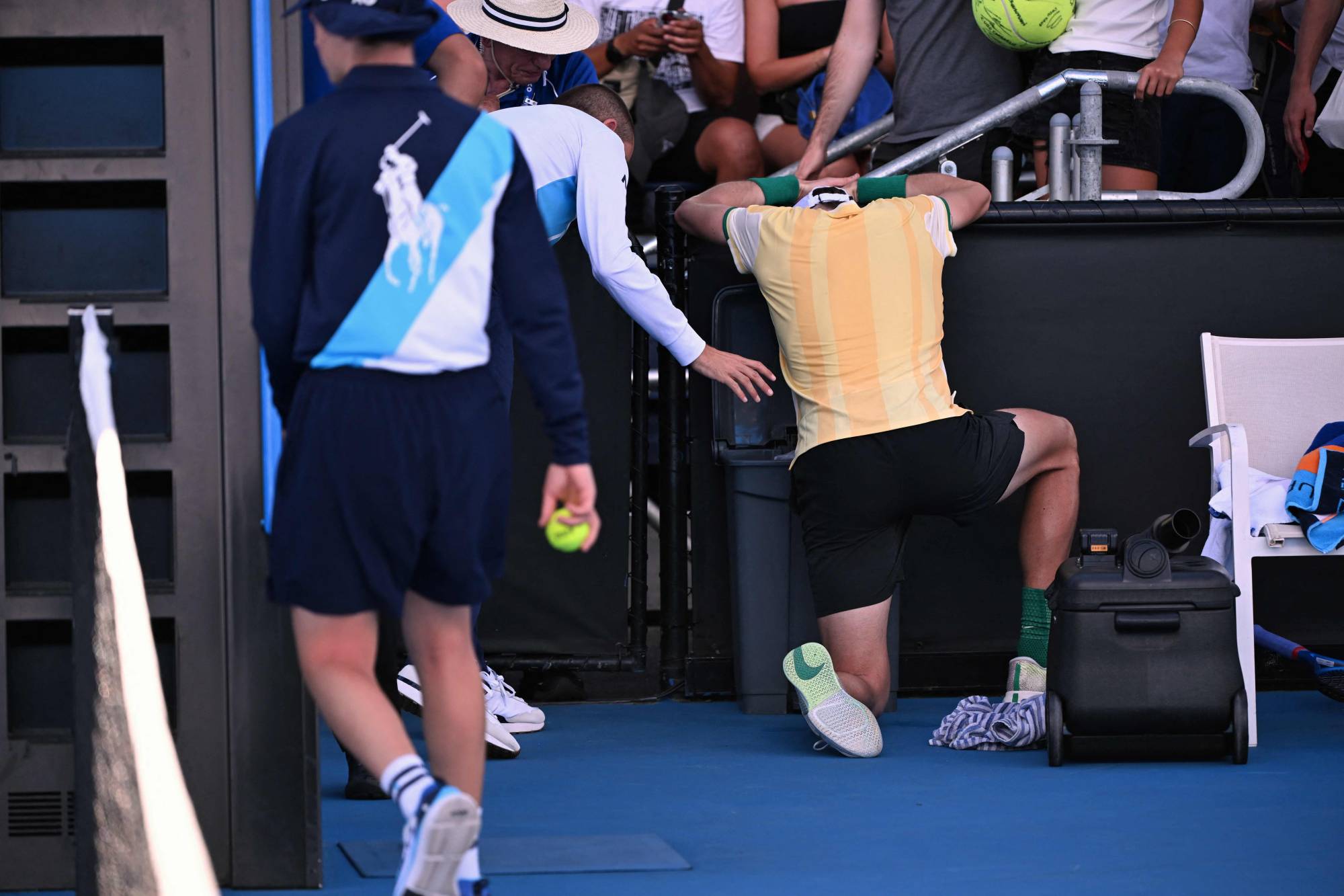 واحتاج اللاعب (22 عاماً) إلى 3 ساعات و20 دقيقة تحت شمس ملبورن الحارة ليتغلب على ماركوس غيرون 6 - 4 و3 - 6 و4 - 6 و6 - 0 و6 - 2، لكنه لم يتمكّن حتى من المصافحة المعتادة لمنافسه الأميركي على الشبكة.