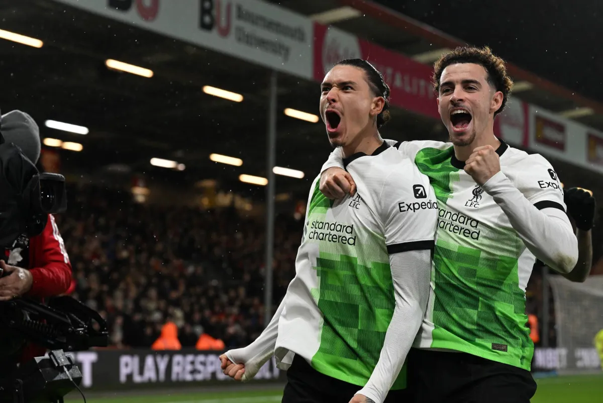 احتفال داروين نونيز بهدفه في مرمى بورنموث (غيتي)