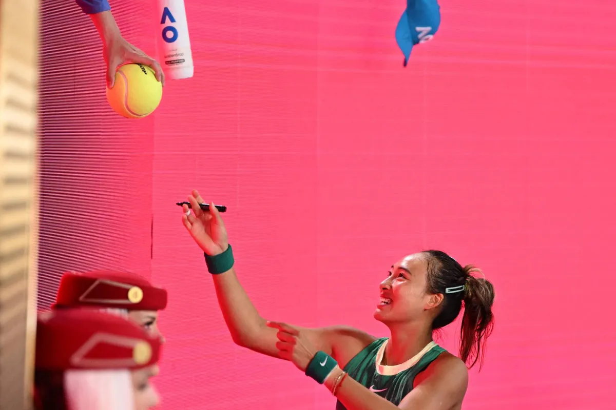 وتغلبت تشينغ على الروسية كالينسكايا 6 - 7 و6 - 3 و6 - 1 في دور الثمانية، وتحدثت بعد ذلك عن محادثتها القصيرة مع ديوكوفيتش في اليوم السابق، عندما التقيا بعد حصتهما التدريبية قبل مباراة اللاعب الصربي مع تيلور فريتز في دور الثمانية.