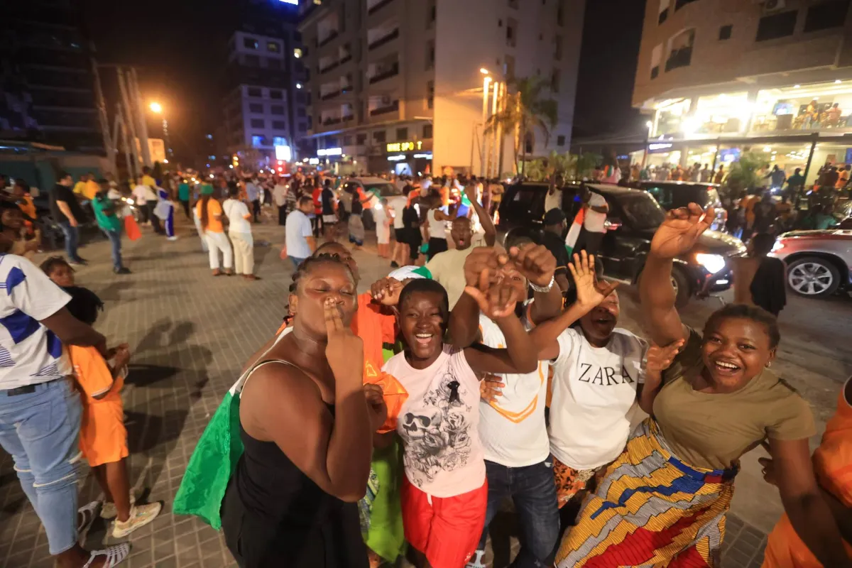 تدفق الآلاف من أبناء كوت ديفوار والمقيمين بها إلى شوارع أبيدجان؛ كبرى مدنها، بعد منتصف ليل الاثنين، بعد انتصار غير متوقع على السنغال حاملة اللقب والتأهل لدور الثمانية في كأس الأمم الأفريقية لكرة القدم.