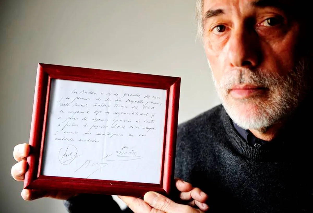 هوراسيو غاغيولي حاملاً التوقيع التذكاري للنجم الأرجنتيني ليونيل ميسي (الشرق الأوسط)