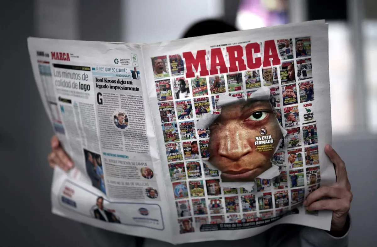 صحيفة «ماركا» الإسبانية نشرت خبراً عن انتقال مبابي إلى الريال (أ.ف.ب)