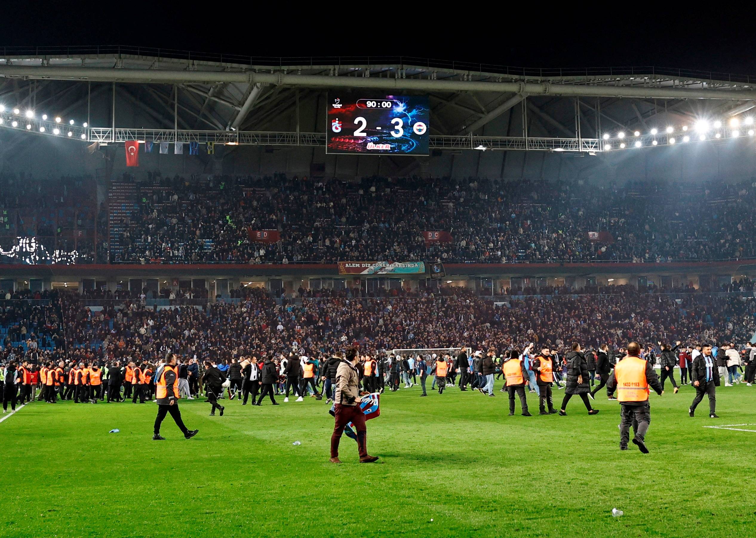 وكان العشرات من مشجعي فريق طرابزون سبور اقتحموا أرض الملعب عقب خسارة فريقهم أمام ضيفه فناربخشة بنتيجة 3-2، بالمرحلة الثلاثين من الدوري التركي الممتاز لكرة القدم، وهاجموا لاعبي فناربخشه والجهاز الفني أثناء الاحتفال بالفوز.