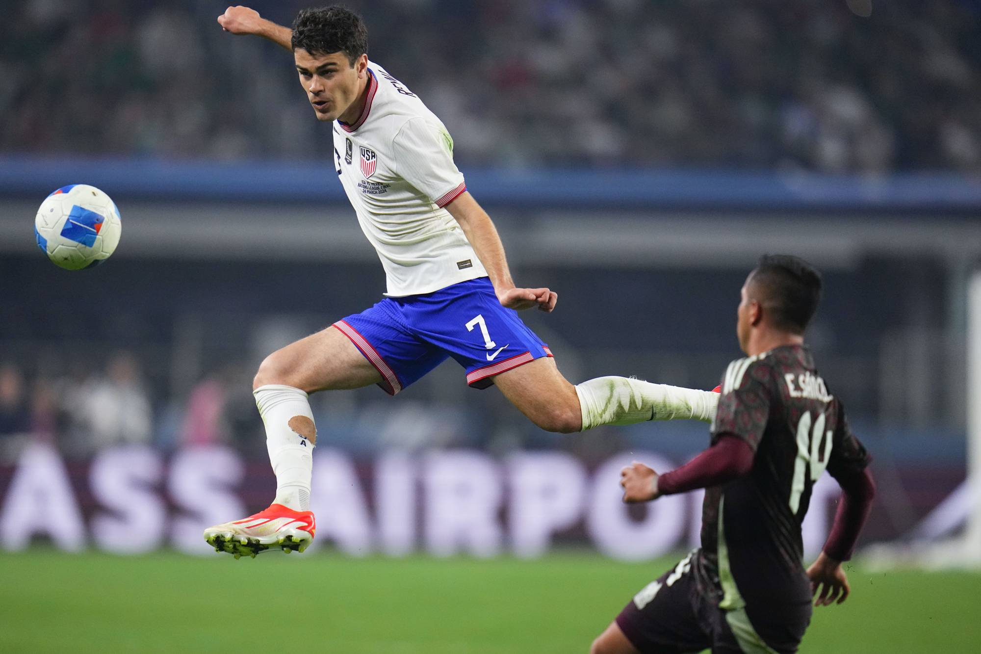 وسجل آدامز الهدف الأول، في الدقيقة 45، بتسديدة بعيدة، ثم أضاف رينا الثاني في الدقيقة 63 بكرة «على الطاير»، ليحسم اللقب على حساب المكسيك، التي فشلت في تحقيق الفوز على غريمتها الإقليمية لمباراة سابعة توالياً، في سيناريو لم يتحقق سابقاً بين المنتخبين.