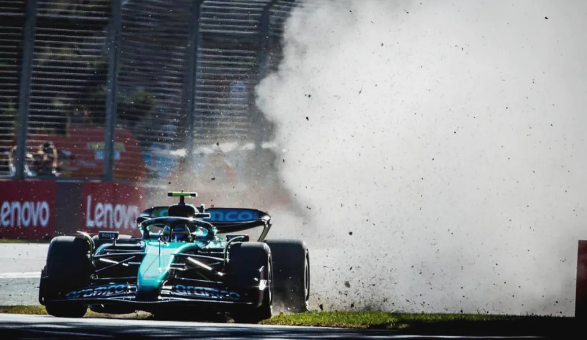 ألونسو سائق أستون مارتن لحظة وقوع حادث راسل سائق مرسيدس خلال منافسات جائزة أستراليا الكبرى للفورمولا1 (الشرق الأوسط)