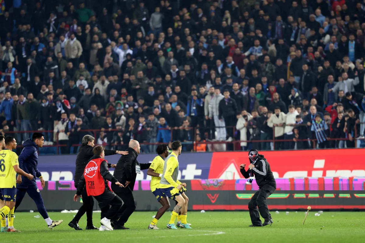 واقتحم مشجعو طرابزون سبور أرض الملعب واشتبكوا مع قوات الأمن ولاعبي فريق فناربخشه الزائر بعد الخسارة 3 - 2 في أحدث واقعة مثيرة للجدل بالدوري التركي الممتاز هذا الموسم.