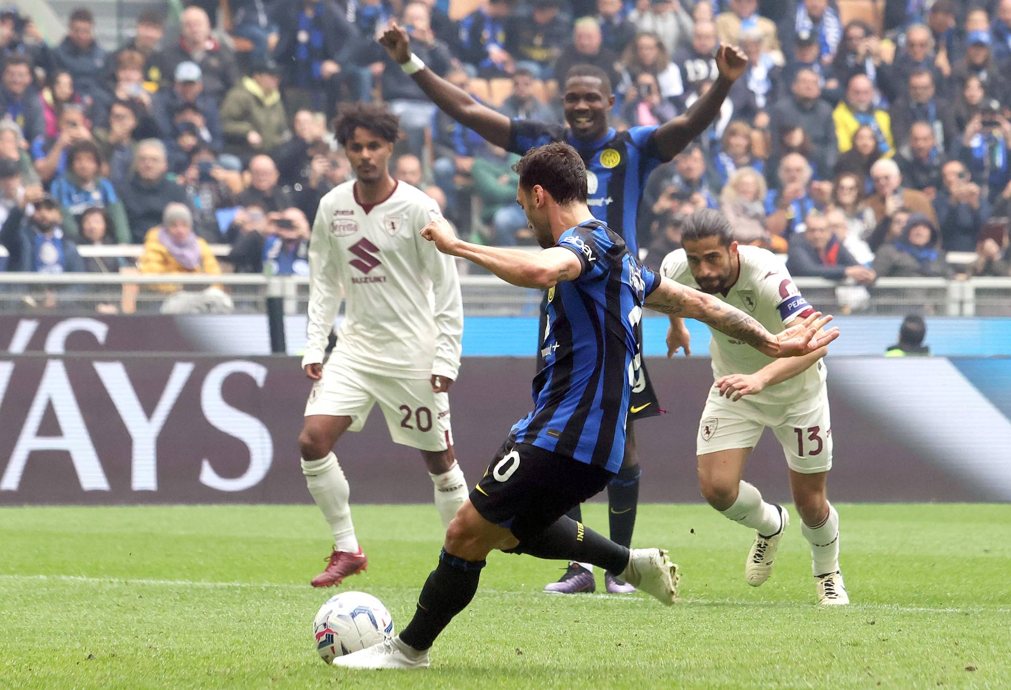 وبعد الهدف افتتح هاكان شالهان أوغلو التسجيل لإنتر بتسديدة قوية بقدمه اليسرى في الدقيقة 56، وأضاف اللاعب نفسه الهدف الثاني من ركلة جزاء بعد 4 دقائق فقط.