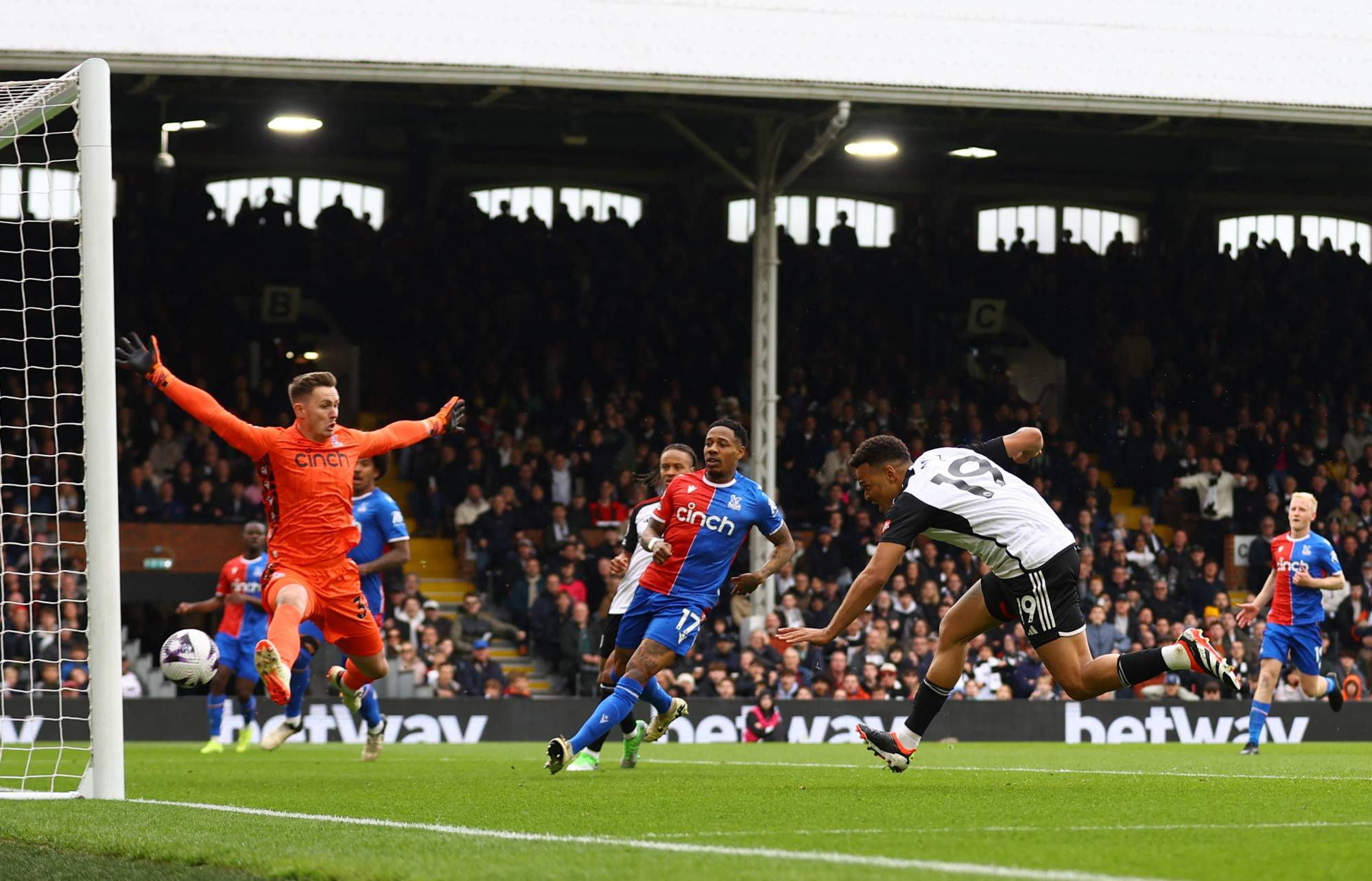 مهاجم فولهام رودريغو مونيز يهز شباك كريستال بالاس (رويترز)