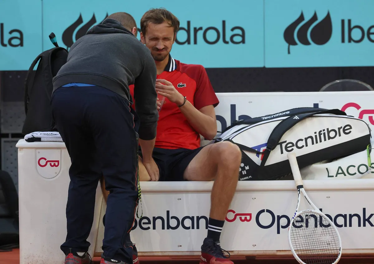 ينتظر دانييل ميدفيديف، المصنف الرابع عالمياً، بقلق لمعرفة حجم الإصابة التي أجبرته على الانسحاب من دور الثمانية لبطولة مدريد المفتوحة للتنس، الخميس، لينضم إلى مجموعة من اللاعبين البارزين الذين يعانون من مشاكل في اللياقة البدنية قبل بطولة رولان غاروس «فرنسا المفتوحة».