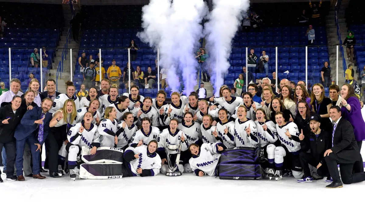 تُوج فريق مينيسوتا بطلاً للنسخة الأولى من دوري هوكي الجليد النسائي للمحترفات في أميركا الشمالية، بعد فوزه 3 - صفر على بوسطن، الليلة الماضية في المباراة الخامسة والأخيرة بين الفريقين في الدور النهائي، بينما احتفل الجمهور بفصل جديد على مستوى الرياضة النسائية.