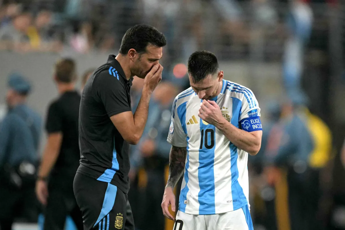 سكالوني يعطي ميسي تعليمات لحظة توقف المباراة (أ.ف.ب)