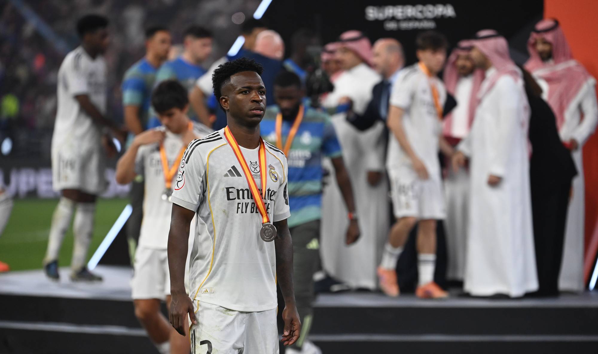 مبابي الذي التحق بزملائه في جدة بعد غيابه عن أول مباراتين في العام الجديد أمام ريال بيتيس في الدوري الإسباني (5 - 1) ونصف نهائي كأس السوبر ضد أتلتيكو مدريد (2 - 1)، حلّ مكانه في التشكيلة الأساسية الشاب الإسباني غارسيا (21 عاماً) الذي أحرز ثلاثية «هاتريك» أمام بيتيس.