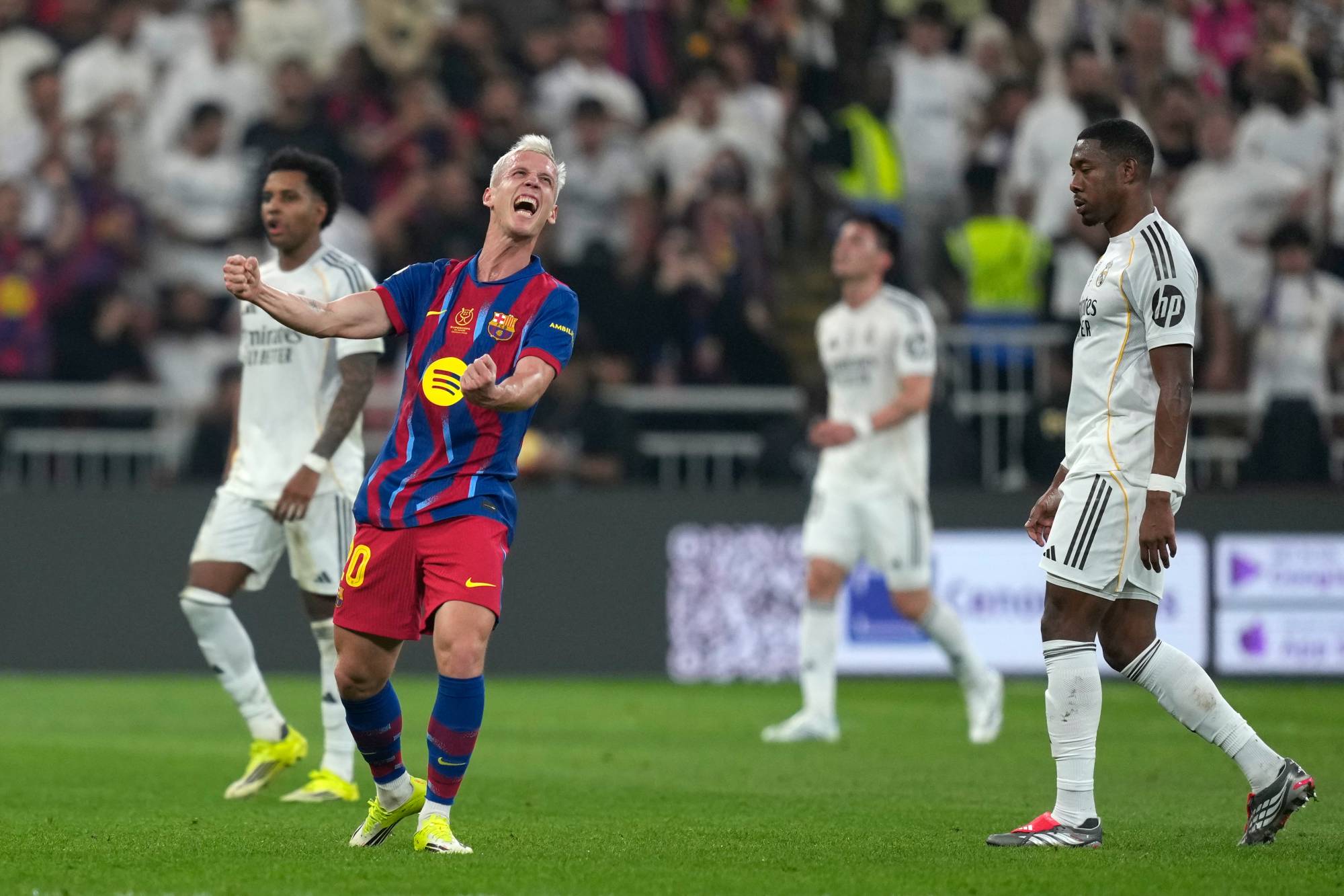 ويدين الـ«بلاوغرانا» بلقبه السادس عشر القياسي إلى البرازيلي رافينيا الذي سجّل هدف الفوز بعدما كان افتتح التسجيل أيضاً لفريقه (36 و73)، قبل أن يضيف البولندي روبرت ليفاندوفسكي الهدف الثاني، في حين سجّل البرازيلي فينيسيوس جونيور (45+2) وغونسالو غارسيا (45+6) هدفي ريال الذي بقي مدربه شابي ألونسو من دون أي لقب منذ توليه القيادة.