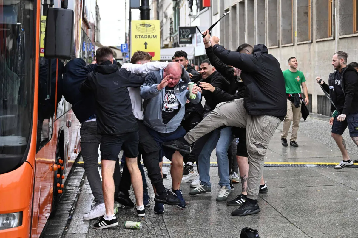 وأظهرت مقاطع فيديو نُشرت على مواقع التواصل الاجتماعي مشجعين في وسط المدينة يتقاذفون المقاعد ويشتبكون في معارك مساء الثلاثاء.
