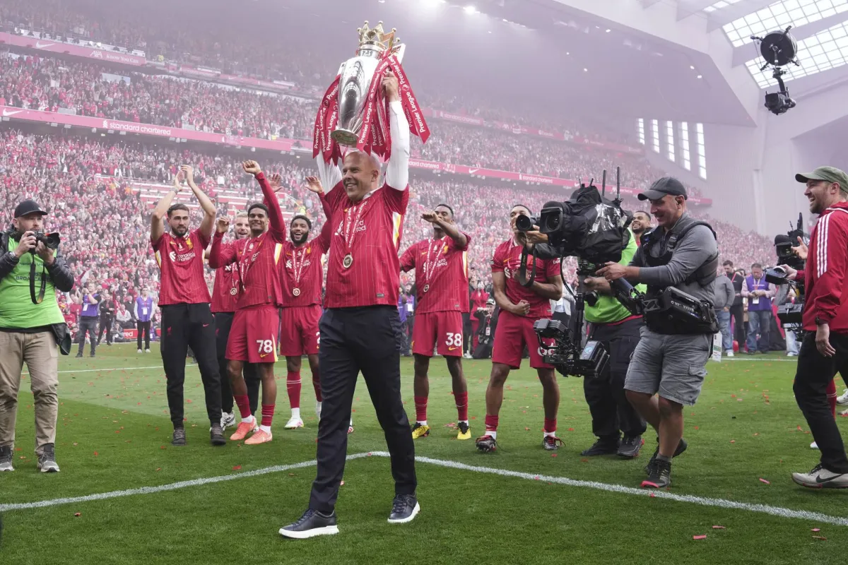 فاجأ المدير الفني الهولندي الجميع بفوزه بلقب الدوري الإنجليزي الممتاز في أول موسم له مع ليفربول. واجه سلوت مهمة شاقة عندما تولى قيادة الفريق خلفاً للمدير الفني الأسطوري يورغن كلوب، ولم يضم سوى فيديريكو كييزا، الذي لم يشارك في المباريات إلا نادراً. لم تشهد تشكيلة الفريق الكثير من التغييرات بالمقارنة بالعام السابق، باستثناء الاعتماد على رايان غرافينبيرتش في مركز لاعب خط الوسط المدافع، في الوقت الذي كان يسعى فيه ليفربول، بقيادة سلوت، لاستعادة الكرة في أسرع وقت ممكن. كانت مهمة خلافة كلوب في تدريب ليفربول تبدو شبه مستحيلة، لكن سلوت قدّم أداءً رائعاً جعلها تبدو سهلة، فقد ورث تشكيلة مشابهة لتشكيلة سلفه، واستمر في نهج اللعب القائم على الاستحواذ؛ ما مكَّنه من الظفر باللقب قبل أربع جولات من نهاية الموسم، ليعادل الرقم القياسي الذي حققه مانشستر يونايتد بالفوز بـ20 لقباً في الدوري الإنجليزي الممتاز.
