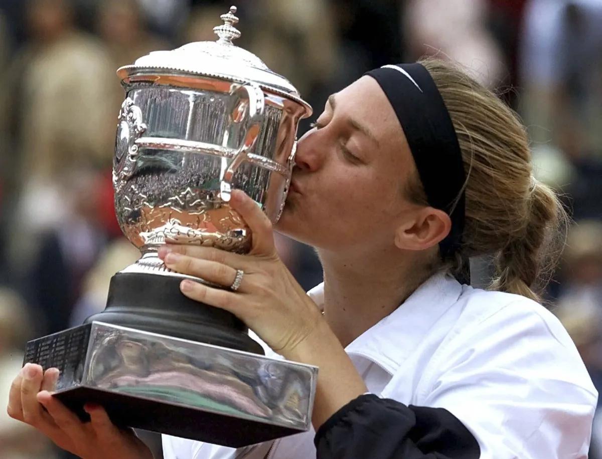ماري بيرس مع كأس بطولة فرنسا المفتوحة عام 2000 (أ.ب)