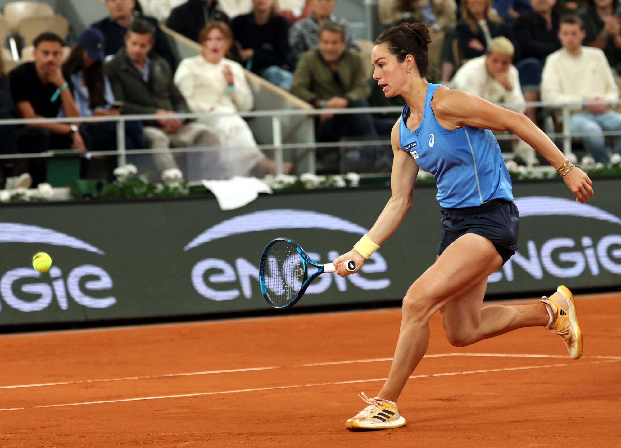 بدأت الروسية البالغة 18 عاماً في التراجع تحت الضغط، كما نالت إنذاراً لضربها الكرة تجاه المدرجات وسط أجواء حماسية على ملعب فيليب شاترييه.