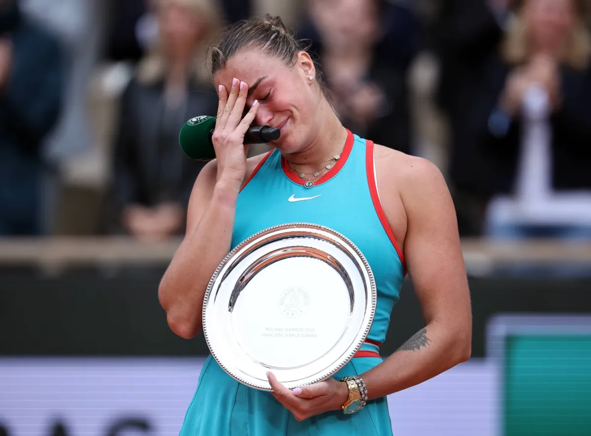 وقالت اللاعبة القادمة من روسيا البيضاء، وهي تعاني لتكتم بكاءها: «هذا مؤلم للغاية، خصوصاً بعد أسبوعين صعبين لعبت فيهما بطريقة رائعة في ظروف سيئة».