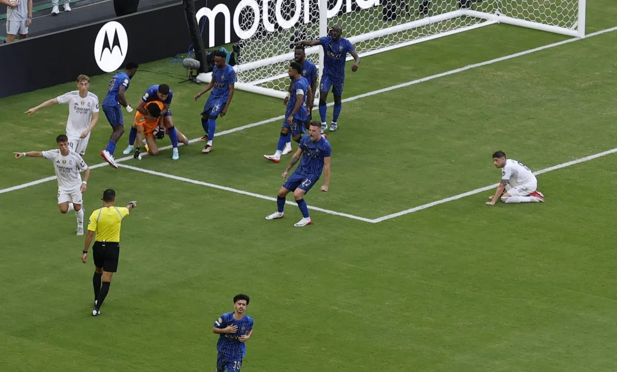 بينما لفت الهلال أنظار العالم بأدائه المذهل أمام الريال في القمة المونديالية، تواصلت عقدة الشباك النظيفة لفريق ريال مدريد الإسباني أمام الفرق العربية في بطولة كأس العالم للأندية، وذلك بعدما سقط في فخ التعادل الإيجابي 1 / 1. وبادر الريال بالتسجيل عن طريق غونزالو غارسيا في الدقيقة الـ34، لكن سرعان ما أحرز البرتغالي روبن نيفيز هدف التعادل للهلال في الدقيقة الـ41 من ركلة