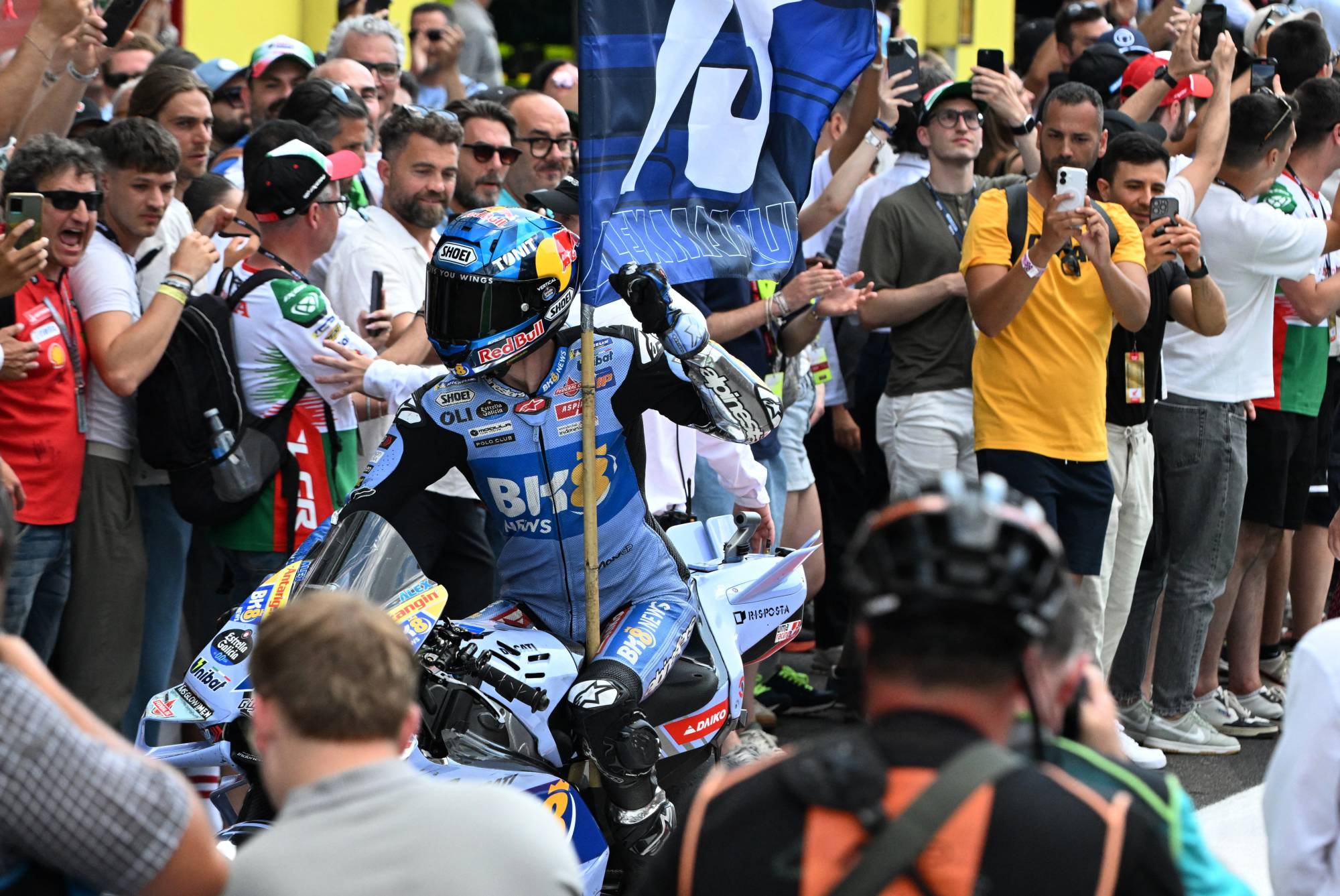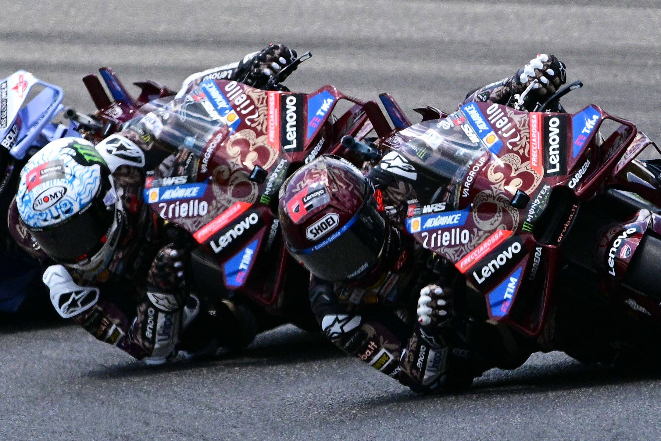 أحرز الإسباني مارك ماركيز (دوكاتي) المركز الأول في سباق جائزة إيطاليا الكبرى، المرحلة التاسعة من بطولة العالم للدراجات الكبرى فئة «موتو جي بي»، الأحد، على حلبة موجيلو، مبتعداً في صدارة الترتيب. وأنهى ماركيز، الفائز بسباق السرعة، السبت، اللفات الـ23 على حلبة موجيلو المهيبة (5.250 كيلومتر) متقدماً على زميليه في دوكاتي؛ شقيقه الأصغر أليكس ماركيس، الثاني بفارق 1.942 ثانية، والإيطالي فابيو دي جانانتونيو (دوكاتي - في آر 46)، الثالث بفارق 2.136 ثانية. واكتفى زميل ماركيز في الفريق، الإيطالي فرانتشيسكو بانيايا، بطل العالم مرتين (2022 و2023) والفائز بالنسخ الثلاث الأخيرة لجائزة إيطاليا الكبرى، بالمركز الرابع، بفارق 5.081 ثانية، رغم دعم 160 ألف متفرج متحمس طوال عطلة نهاية الأسبوع.
