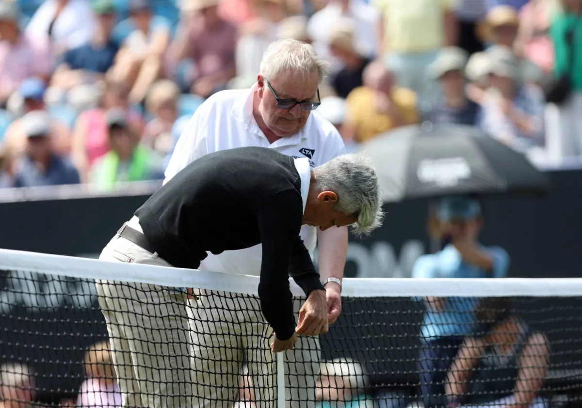 تطلب الأمر إجراء إصلاحات طارئة في بطولة إيستبورن للتنس اليوم الأربعاء (رويترز)