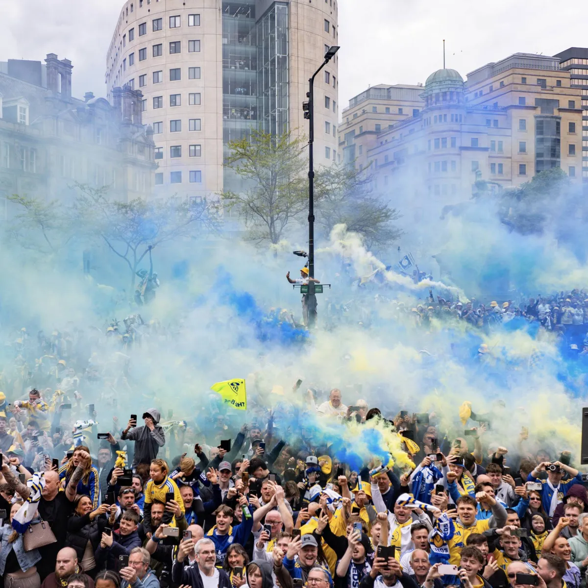 جماهير ليدز خلال الاحتفالات بلقب تشامبيونشيب (الشرق الأوسط)