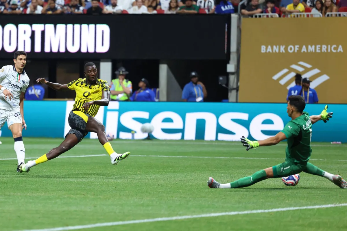 ويدين دورتموند بالفضل لنجمه الغيني سيرهو غيراسي في الخروج منتصرا بتسجيله هدفي الفريق في الدقيقتين 14 و24، فيما سجل لمونتيري جيرمان بيرتيرامي في الدقيقة 48.