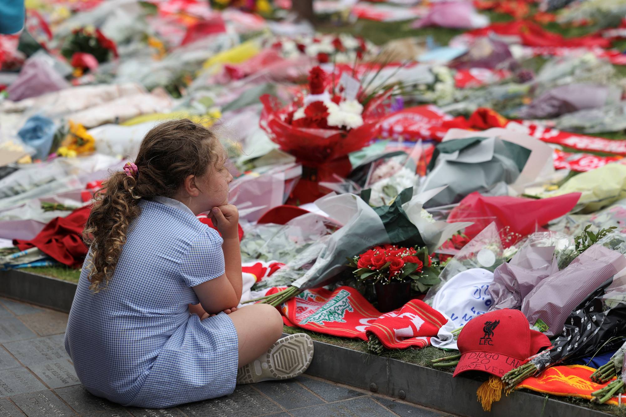 وخارج ملعب «آنفيلد» في ليفربول، وضع مشجعون الزهور والأوشحة ورسائل التعازي المكتوبة بخط اليد وكثير منها كتبها أطفال.