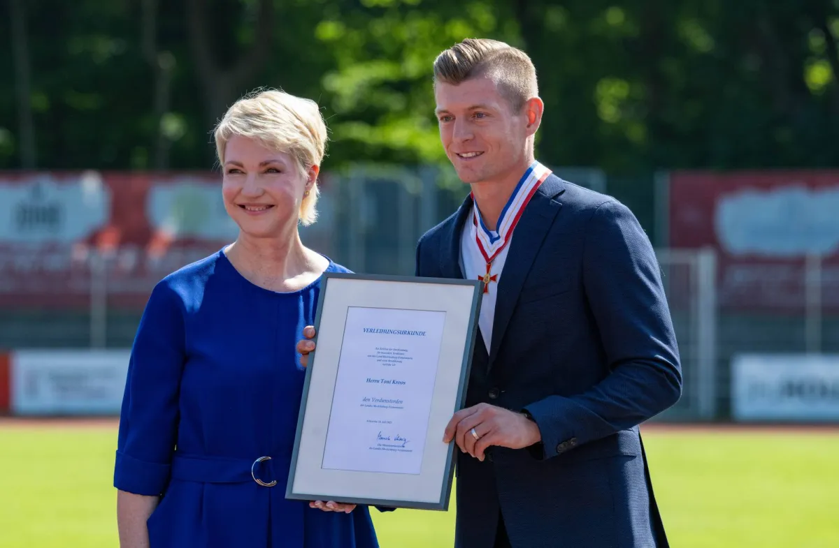 حصل النجم الدولي الألماني السابق توني كروس، على وسام الاستحقاق من ولاية مكلنبورغ فوربومرن الشرقية؛