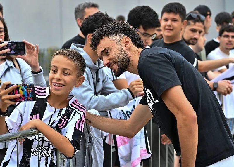 طفل من أنصار يوفنتوس يطلب التقاط صورة مع البرتغالي ماريو (نادي يوفنتوس)